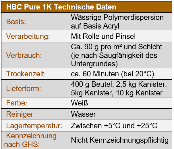 HBC FixSperre F1Feuchtigkeitssperre und Grundierung (bei frischen Estrichen und für HBC FixDicht)ca. 100-150g/m²