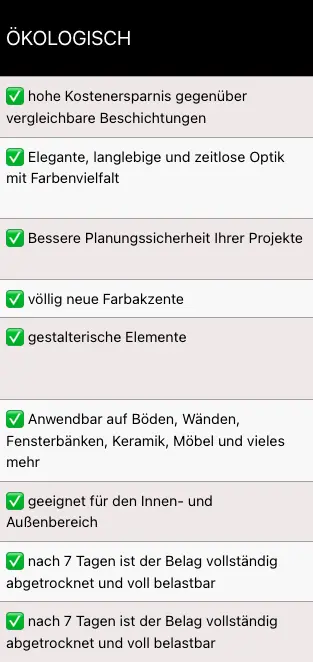 ✅ hohe Kostenersparnis gegenüber vergleichbare Beschichtungen✅ ressourcenschonend✅ Abwaschbar, Pflegeleicht – Für Allergiker geeignet